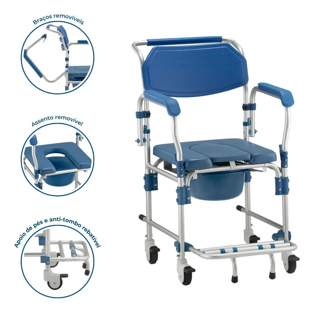 A Cadeira de Banho Higiênica D60 Dellamed é uma solução completa e versátil para adultos e idosos com mobilidade reduzida. Com estrutura em alumínio leve e resi